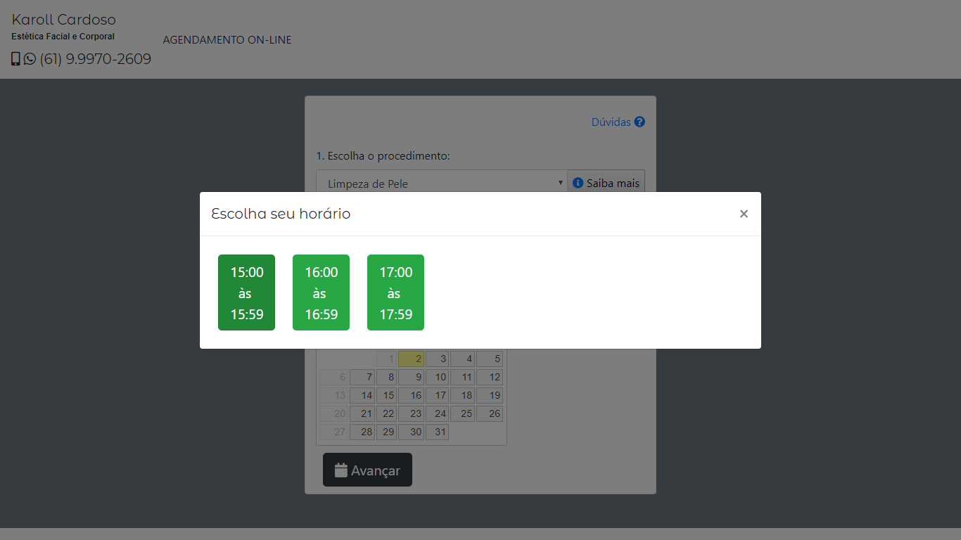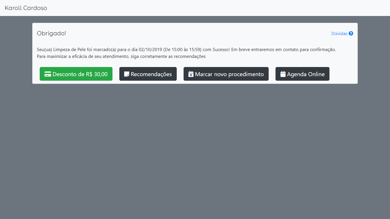 Pronto, após marcar o procedimento, o horário fica reservado pra você, iremos ligar para confirmar em até uma hora antes ou no dia anterior ao seu atendimento.