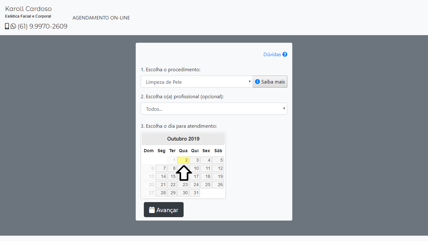 Após selecionar o procedimento e o dia, clique em